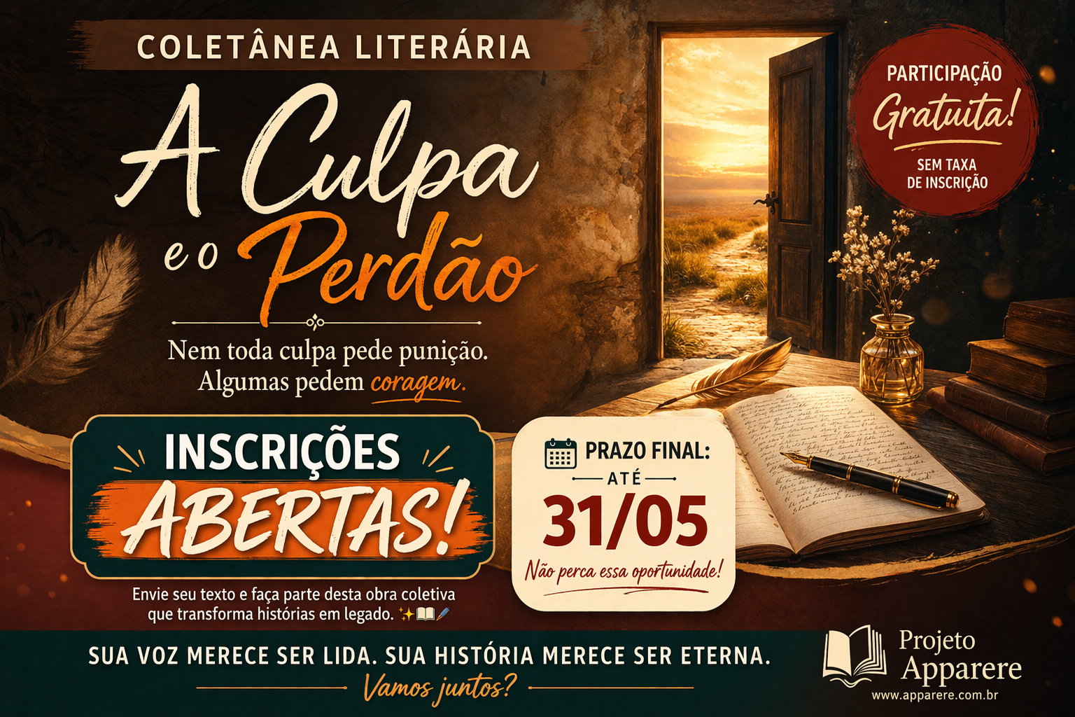 A culpa e o perdão” é uma coletânea sobre a travessia entre o erro e a reparação, entre a ferida e o alívio, entre o “não tem volta” e o “ainda dá para recomeçar”.